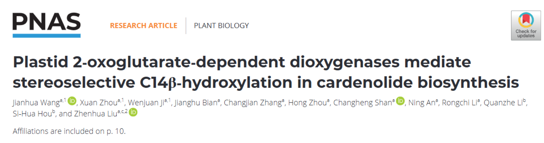 PNAS—刘振华课题组发现α-酮戊二酸依赖型双氧化酶介导强心苷生物合成中立体特异性C14β羟基化反应